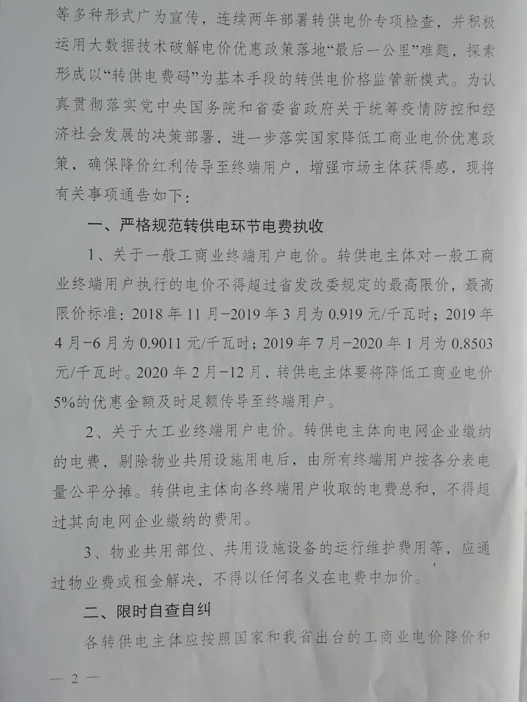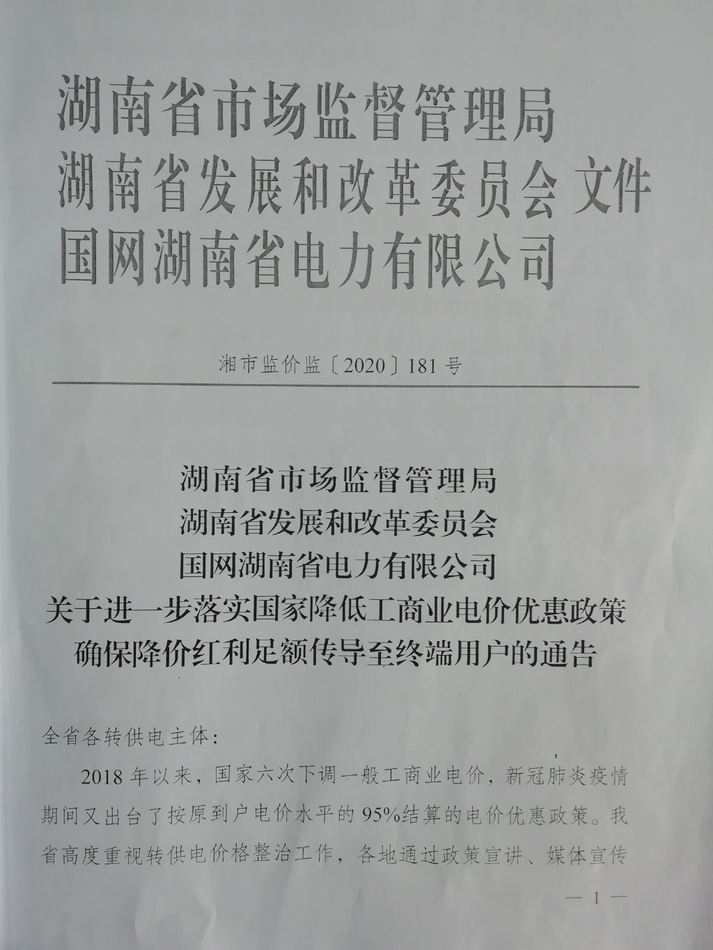 关于进一步落实国家降低工商业电价优惠政策确保降价红利足额传导至终端用户的通告