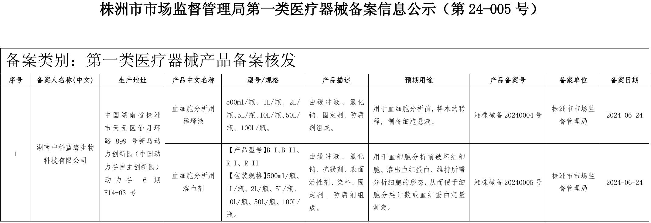 株洲市市场监督管理局医疗器械备案信息公示(第24-005号)