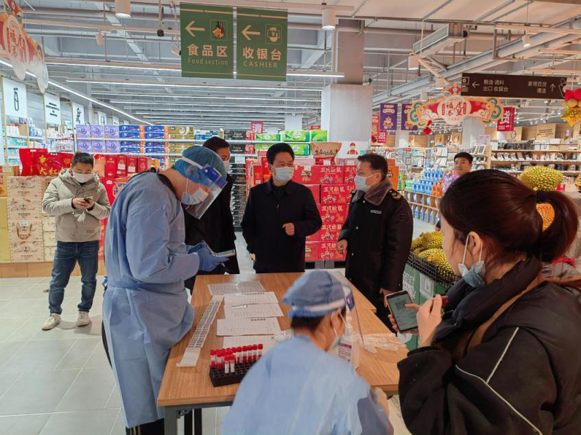 临近春节,疫情防控形势日益严峻。为进一步落实常态化疫情防控工作,压实市场监管主体责任,1月20日,荷塘区市场监管局局长罗炽威带队,联合区疾控中心工作人员对辖区大型商超进口冷链食品及重点人群开展核酸检测工作。