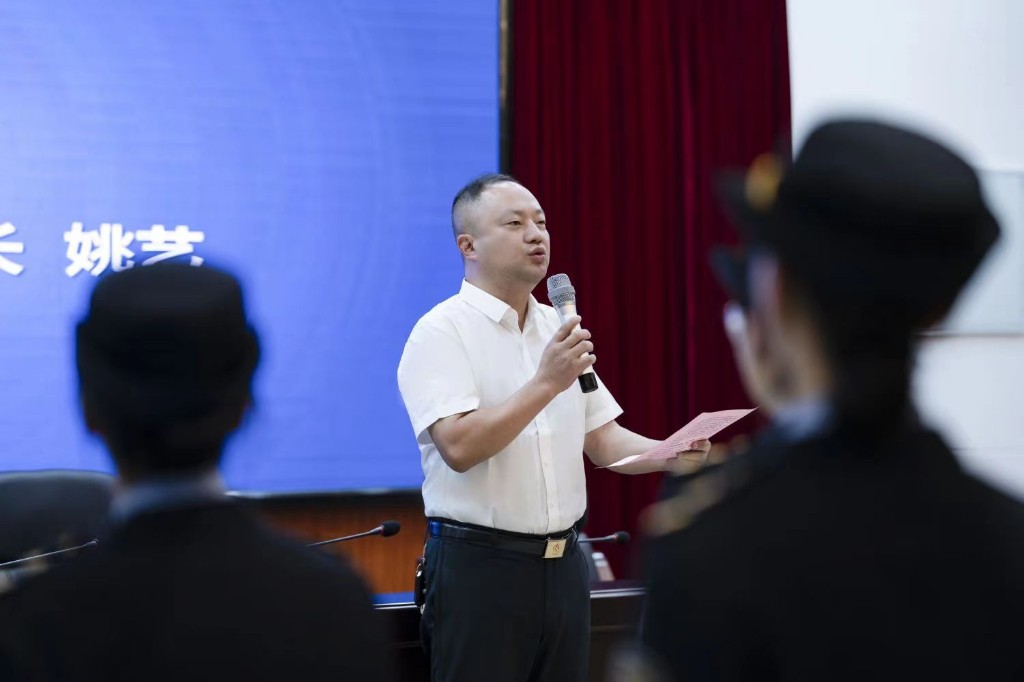 仪式上,芦淞区市场监督管理局全体党员干部身着崭新而庄重的制式服装,整齐列队,庄严宣誓。铮铮誓言铿锵有力,庄严承诺掷地有声。既展现出了芦淞区市场监管干部英姿飒爽、意气风发的精神风貌,也表达了忠于国家、忠于人民的赤诚之心和奋勇向前、担当作为的干事激情!随后,两名干部代表在仪式上作了表态发言。