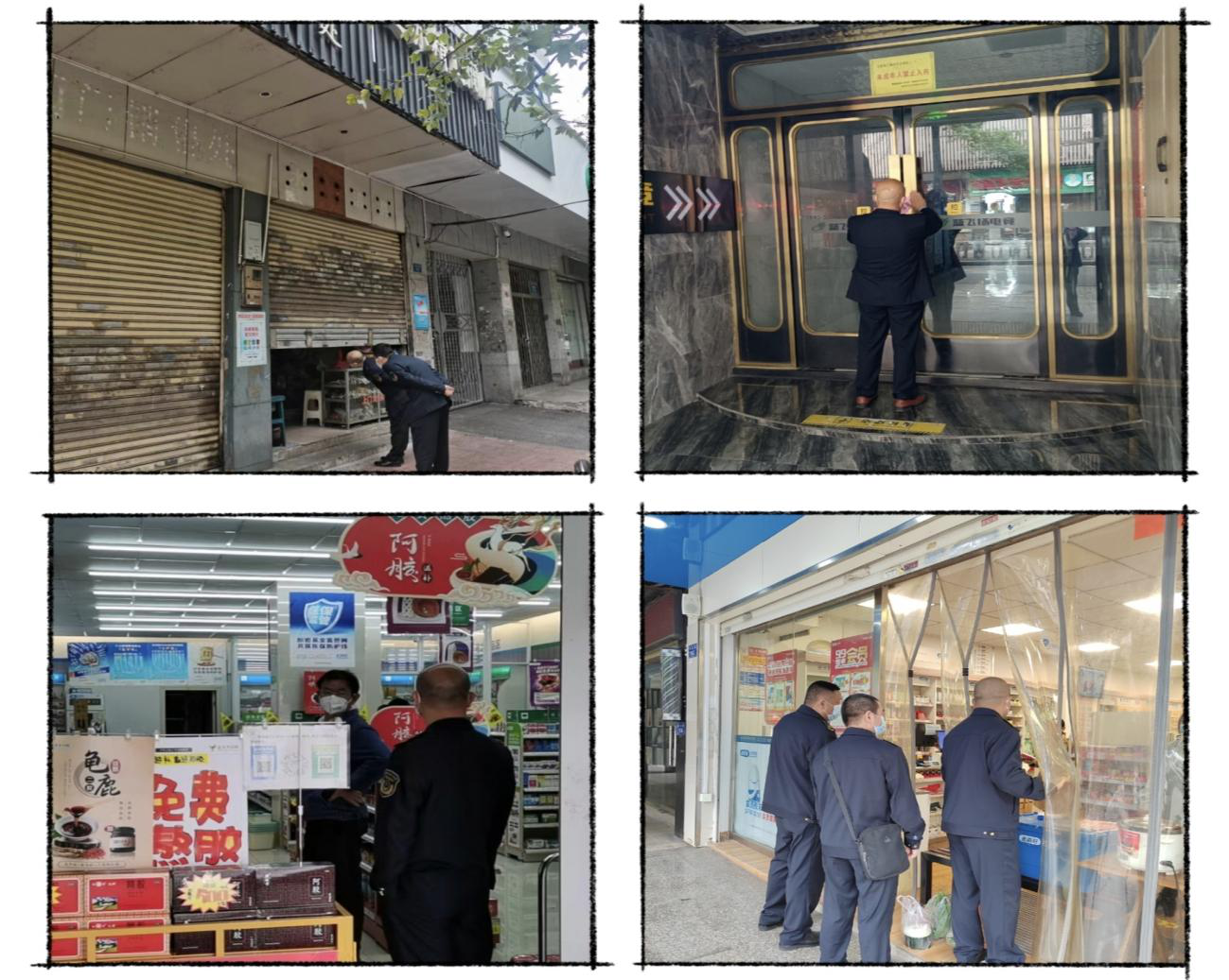 “现在暂停营业,请勿入内”、“请戴好口罩”……执法人员的身影一直穿梭在各个角落,一遍又一遍、一次又一次进行宣传、规劝,按照防疫政策督促商家关门停业,及时向经营户做好解释工作,对居住经营一体的店铺进行劝导提醒,督促其严格落实防疫规定。截至目前,共计出动执法人员489人次,检查药店81家、餐饮177家、超市15家,目前辖区营业场所除指定保障供应的62家药店外其余的已关闭,坚决果断落实静默管控措施,以最快的速度切断传播链条。