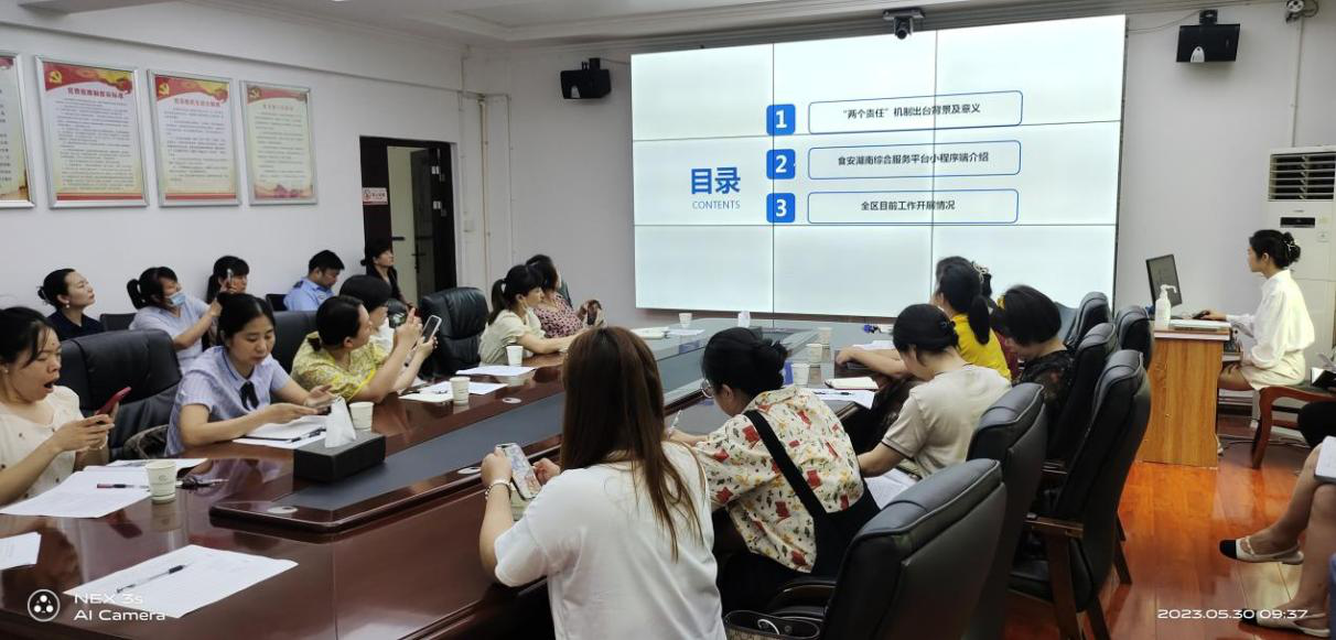 培训会上,区食安办专班人员首先对食品安全“两个责任”的“两个文件”——《关于建立健全分层分级精准防控末端发力终端见效工作机制 推动食品安全属地管理责任落地落实的意见》(食安委发〔2022〕7 号)和《企业落实食品安全主体责任监督管理规定》(总局令第60号令)进行简要介绍,为到场企业代表具体讲解了总局第60号令内容条项,同时分端口、分模块介绍食安湖南综合服务平台小程序的操作方法,并向参训人员展示属地管理平台PC端各类数据看板,通报目前全区工作进展,点明省市近期督查的工作重点。