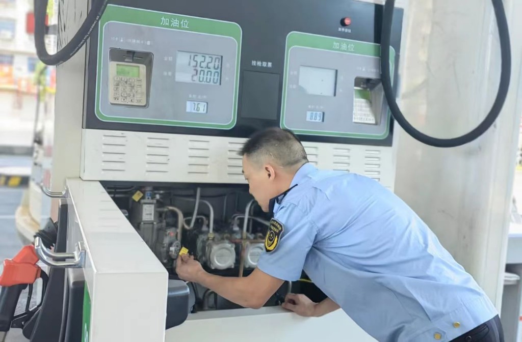 执法人员重点检查了各加油站是否配备和使用符合成品油贸易计量要求的计量器具,查验加油机各部位铅封是否完好,是否有作弊、偷换计量装置主板和计量芯片等计量违法行为,计量器具是否定期开展自查自校,是否向社会公开作出诚信计量自我承诺等。