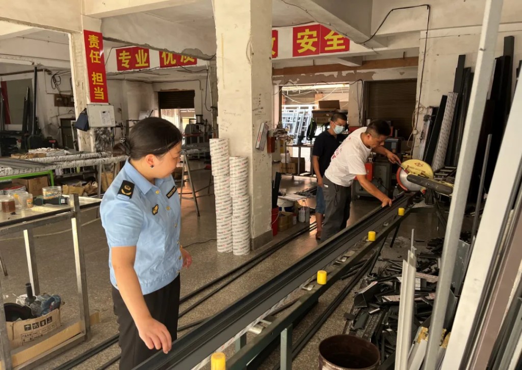 此次行动依据GB/T8478-2020《铝合金门窗》国家标准,对辖区内铝合金建筑型材制造企业生产的铝合金门窗进行随机取样抽检,重点对型材的硬度、尺寸、出厂合格证、外观及表面质量等方面进行检验。同时就企业是否落实产品质量安全主体责任,是否存在铝合金型材质量不达标、以次充好等问题进行了检查,对发现的问题现场提出了整改要求,并交办辖区市场监管部门督促指导企业落实整改,消除质量安全隐患。