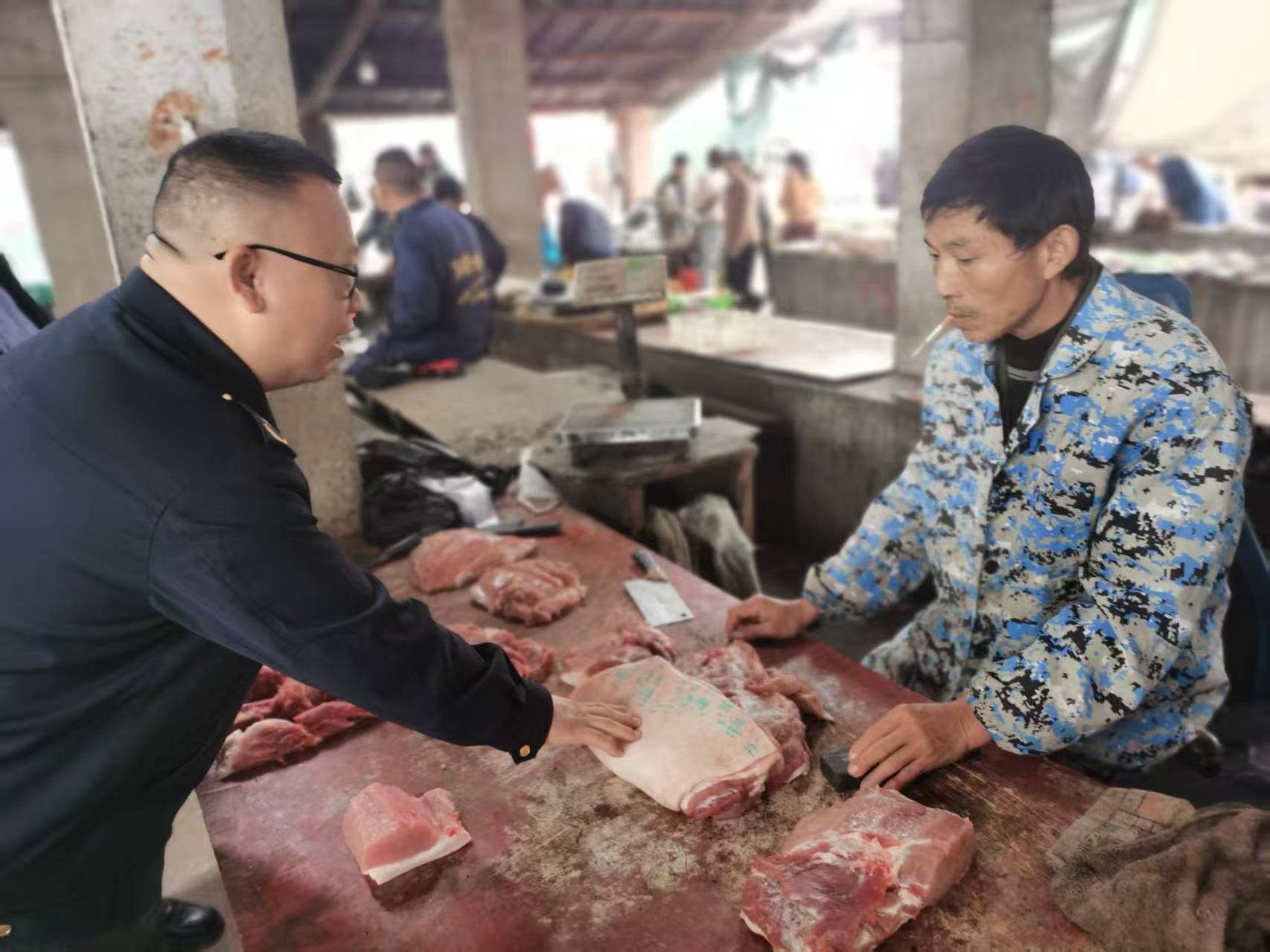 二是严厉打击"白板肉"销售行为。执法人员对市场内所有生鲜猪肉摊位进行了拉网式检查,严格查验动物检疫合格证明、肉品品质检验合格证明以及猪肉胴体上的检疫验讫印章。对于无法提供合法来源凭证、未经检验检疫的"白板肉",一律依法处置,从源头上保障肉类食品安全。
