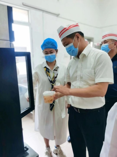 蒋湘晖实地查看了两所幼儿园食堂设施设备,逐一检查了切配间、洗消间、库房等区域;详细询问了食品清洗、加工、烹饪的过程,并对留样食品进行随机抽查,核对样品存放时间及留样克数是否准确;细致翻阅幼儿园进货查验、食品储存等信息记录。